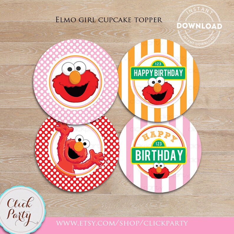Elmo Girl Cupcake Toppers Pink Sesame Street Printable Cake Etsy