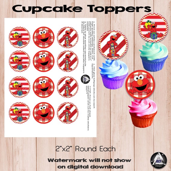 Elmo Cupcake Toppers Sesame Street Party Red Elmo Stickers Etsy