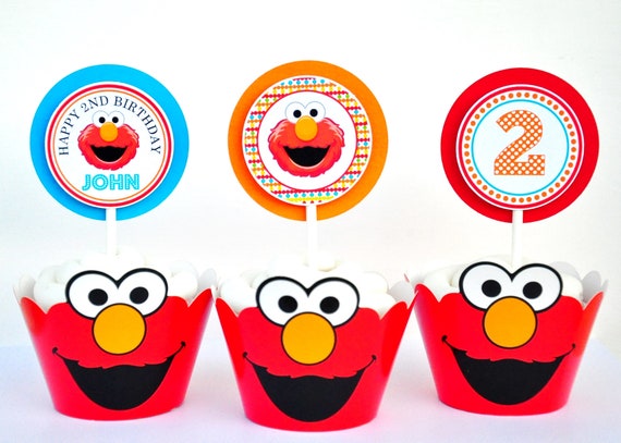 Elmo Cupcake Toppers 1st Birthday Party Decorations Sesame Etsy