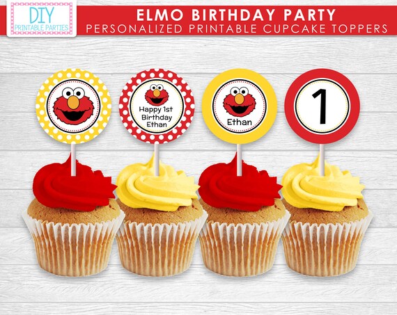 Printable Elmo Cupcake Toppers Printable 1st Birthday Elmo Etsy