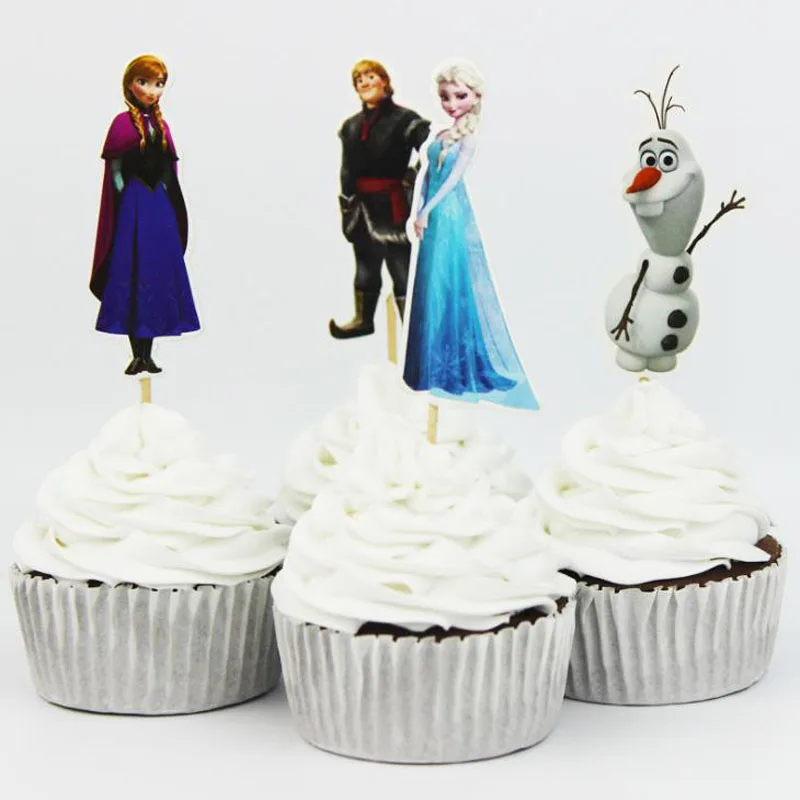 24 Pcs Pack Cartoon Princess Elsa Anna Cupcake Toppers Picks Cake