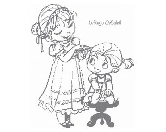 Cross Stitch Pattern Anna And Elsa Childhood By Lerayondesoleil