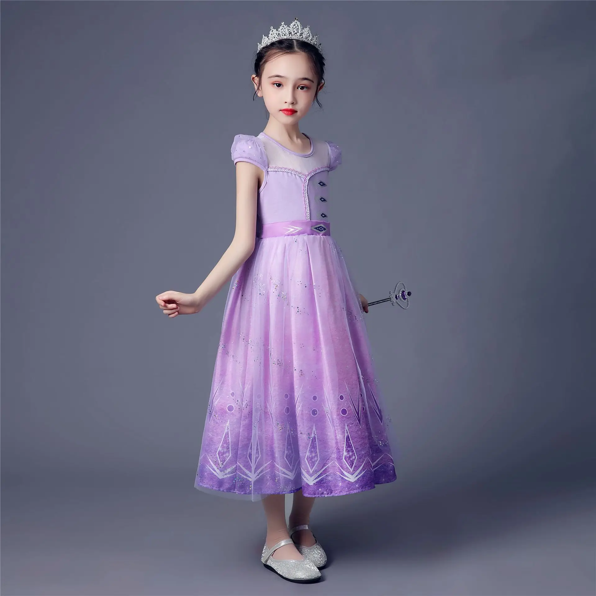 Frozen 2 Elsa Princess Dress Purple Short Sleeved Dress Children S