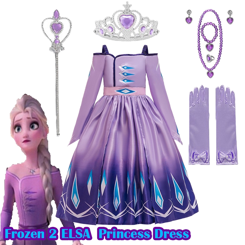 Frozen 2 Elsa Princess Purple Dress For Kids Girls Cosplay Costume
