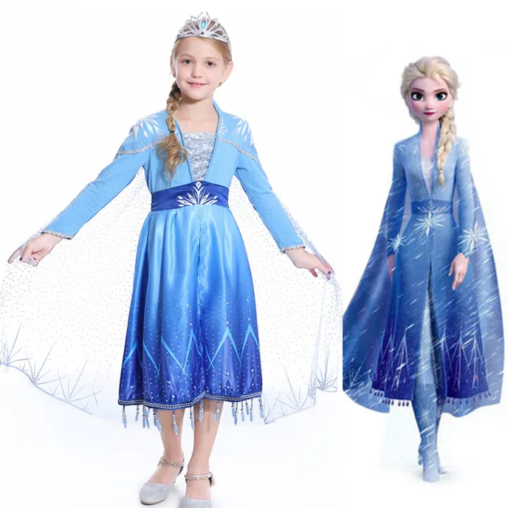 Disney Frozen 2 Dress Princess Elsa Dresses Set Coat Dress