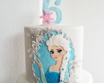 Elsa Frozen Theme Print With Fondant Decoration Birthday Cake