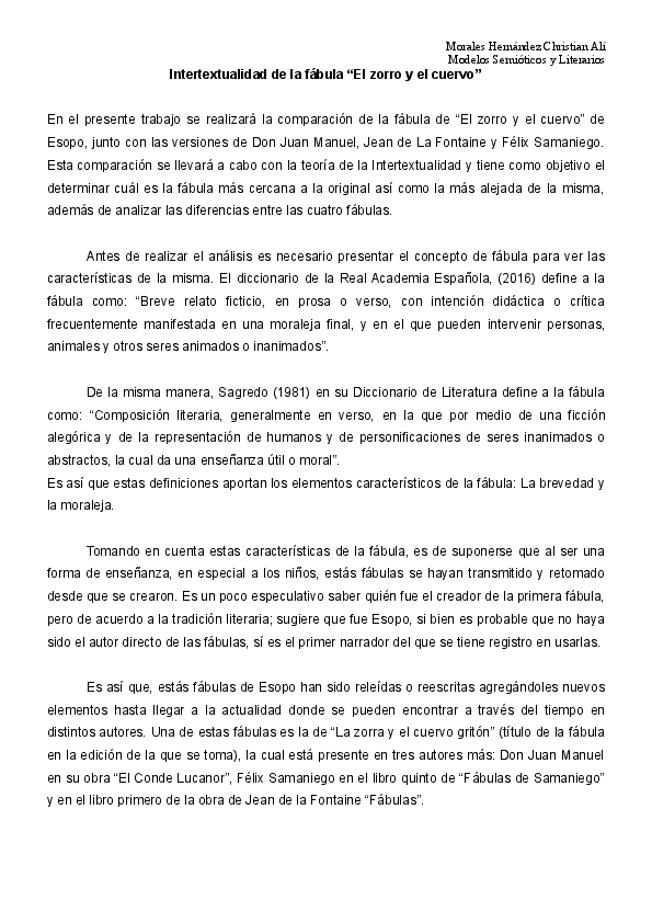 Doc Intertextualidad De La Fabula El Zorro Y El Cuervo