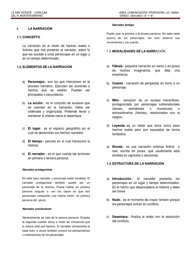 La Narracion 2do Narrativa Narracion