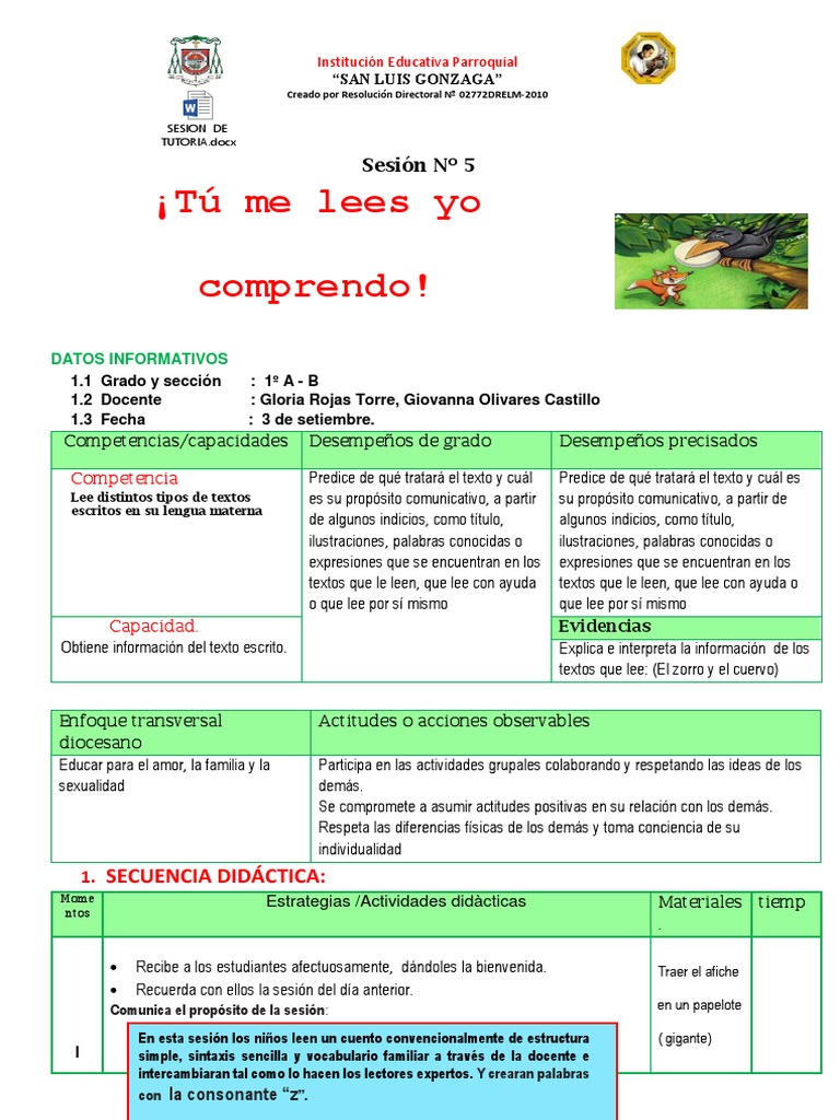 Sesion De Comprension Letra Z El Cuervo Y El Zorro