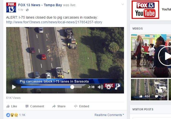 Pig Carcasses Fell Onto I 75 In Sarasota And The Internet Lost Its