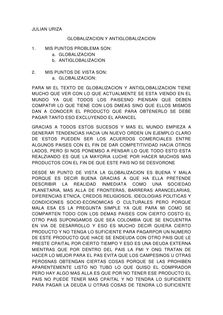 Ensayo De Globalizacion Y Antiglobalizacion