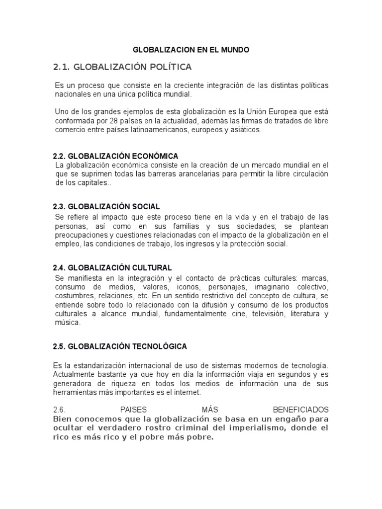 La Globalizacion A Nivel Mundial Docsity