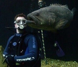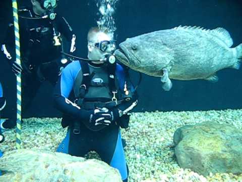 Florida Aquarium Shark Tank Goliath Grouper Kissing Scuba Diver