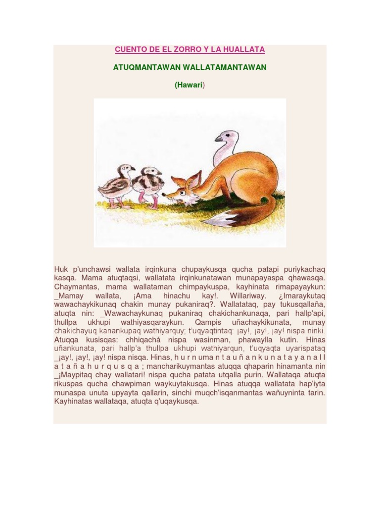 Cuento De El Zorro Y La Huallata Naturaleza
