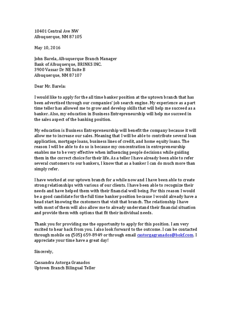 Application Letter Banks Banking Essai Gratuit De 30 Jours