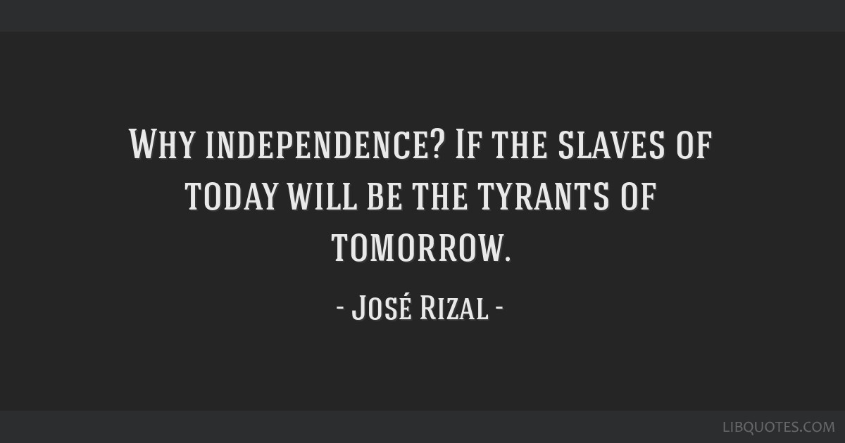 Dr Jose P Rizal Why Independence If The Slaves Of Today Will
