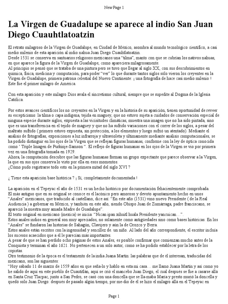 Sobre La Aparicion De La Virgen De Guadalupe A Juan Diego