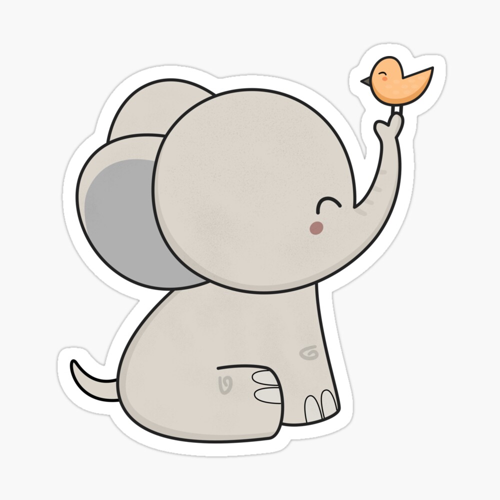Kawaii Cute Elephant And Bird Cute Elephant Sticker Teepublic