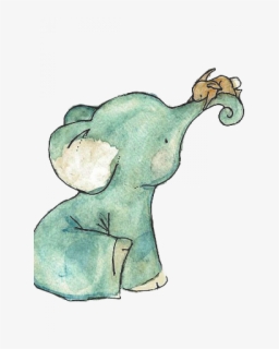 Cute Baby Elephant With Air Bubbles Water Color Cartoon Hand Drawn
