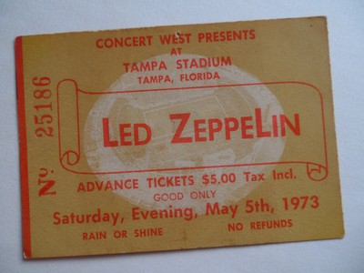Led Zeppelin Original 1973 Concert Ticket Stub Tampa