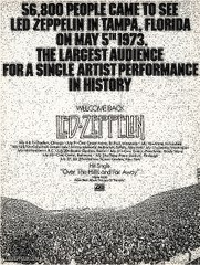 Led Zeppelin 1973 Tampa Bay Record Crowd Advert Full Page