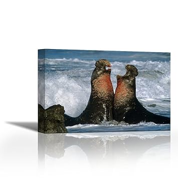 East Urban Home Northern Elephant Seal Males Fighting Framed