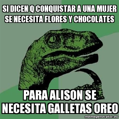Meme Filosoraptor Si Dicen Q Conquistar A Una Mujer Se Necesita Flores Y Chocolates Para Alison Se Necesita Galletas Oreo 15767906