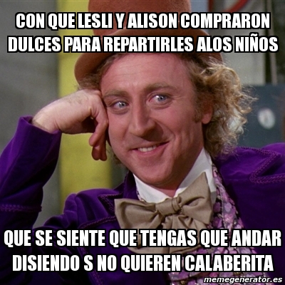 Meme Willy Wonka Con Que Lesli Y Alison Compraron Dulces Para Repartirles Alos Ninos Que Se Siente Que Tengas Que Andar Disiendo S No Quieren Calaberita 6546500