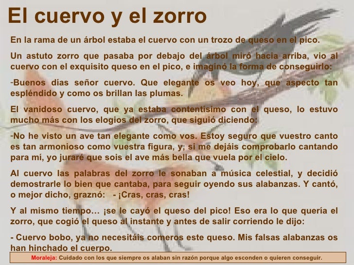 Fabula De La Zorra Y El Cuervo Cuento Con Moraleja Imagenes