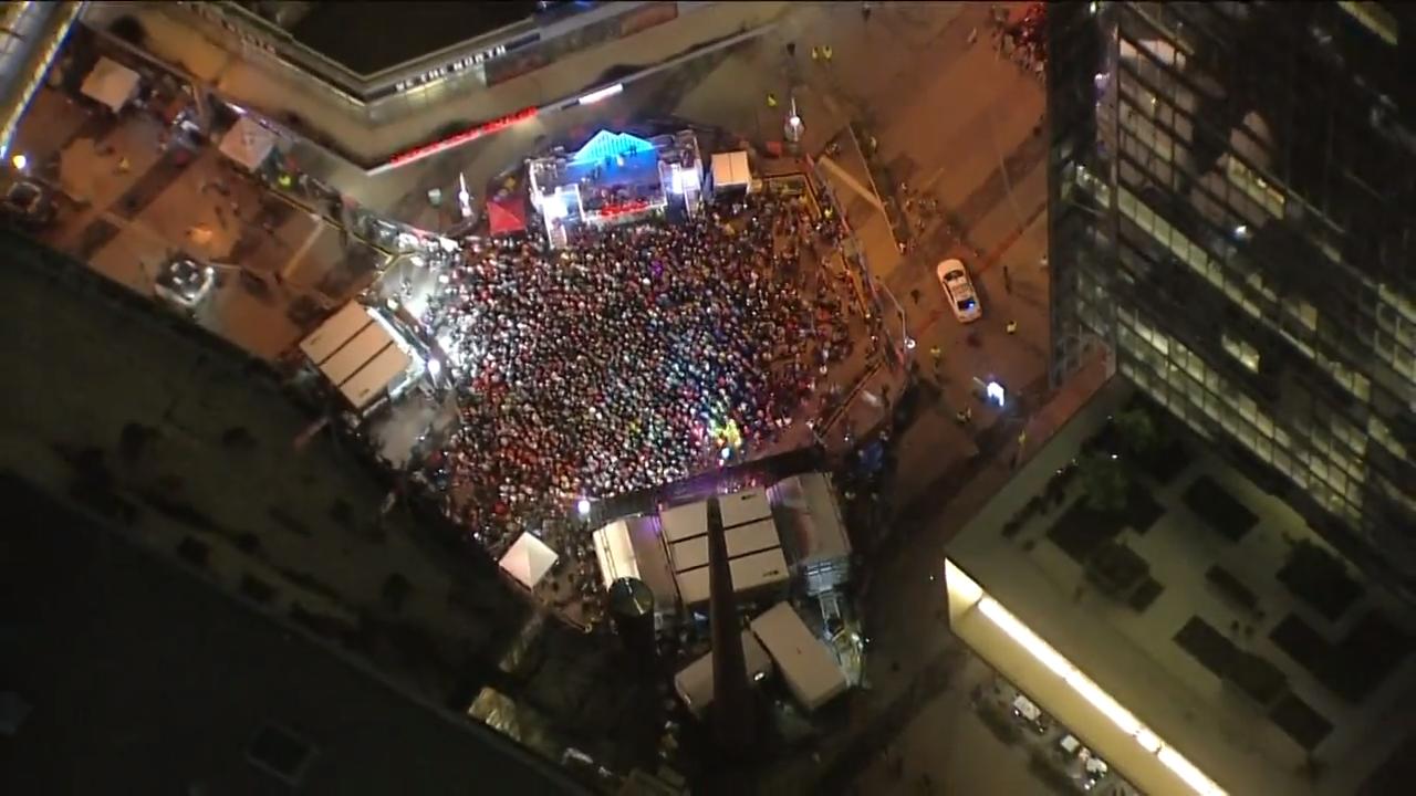 Aerial View Of Crowds Gathered In Jurassic Park To Watch Game 5
