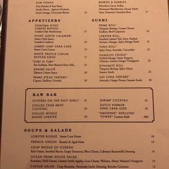 Ocean Prime Menu Menu For Ocean Prime Oak Lawn Dallas