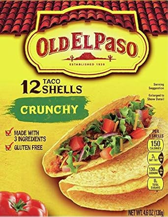 Old el paso crunchy taco shells. Our taco shells are twice cooked so theyre extra crunchy. Taco dinner kit crunchy 88 oz box. 12 crunchy corn taco shells chilli rating mild 1. Select locations now offer curbside pickup home delivery.