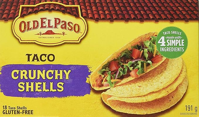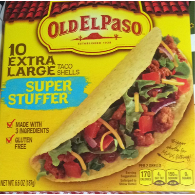 Old el paso stand n stuff taco shells gluten free 47 ounce boxes pack of 3 45 out of 5 stars 8. Old el paso crunchy shells gluten free 18 ct 689 oz by old el paso. Special offers and product promotions. Load up the toasty taco shells with the hearty seasoned beef crispy lettuce juicy tomatoes grated cheese and old el paso taco salsa.