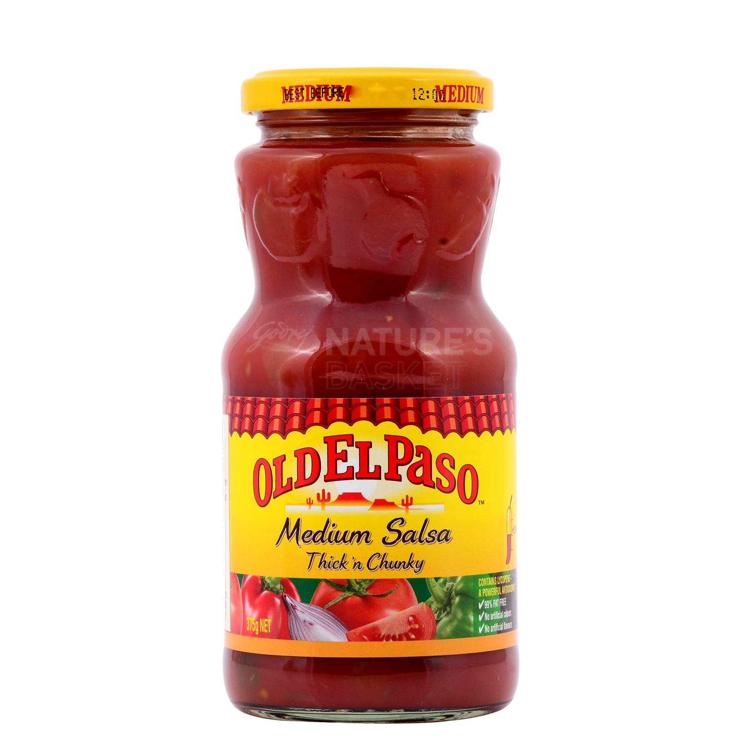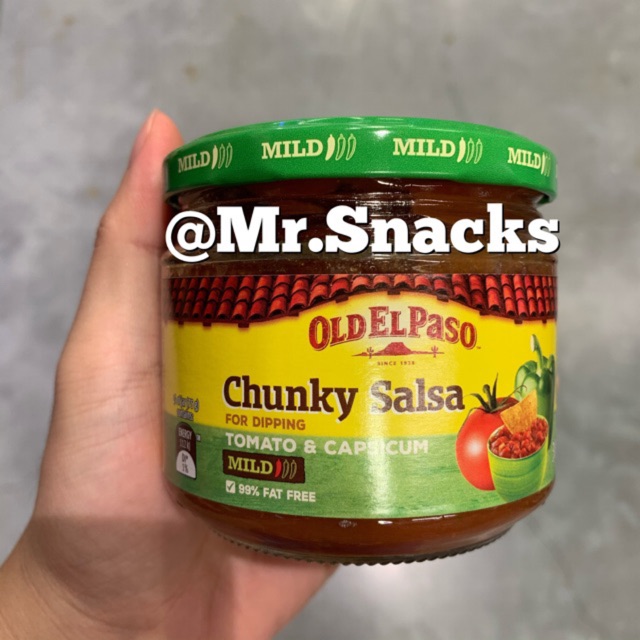 Turn up the heat by trying old el paso thick n chunky hot or medium spice salsa diced tomatoes in tomato juice water tomato paste onions white vinegar salt rehydrated onion sugar rehydrated green bell peppers citric acid dried garlic cilantro lemon juice concentrate calcium chloride spice extract. Our thick n chunky salsa brings a vibrant kick to any mexican dish with a blend of juicy tomatoes onions and mild guajillo peppers. Old el paso mild salsa thick chunky 375g 4. Contains 2 or less of.
