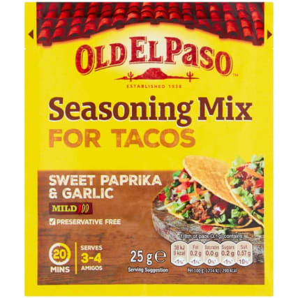 Old El Paso Taco Seasoning Mix Sweet Garlic Paprika 25g B M