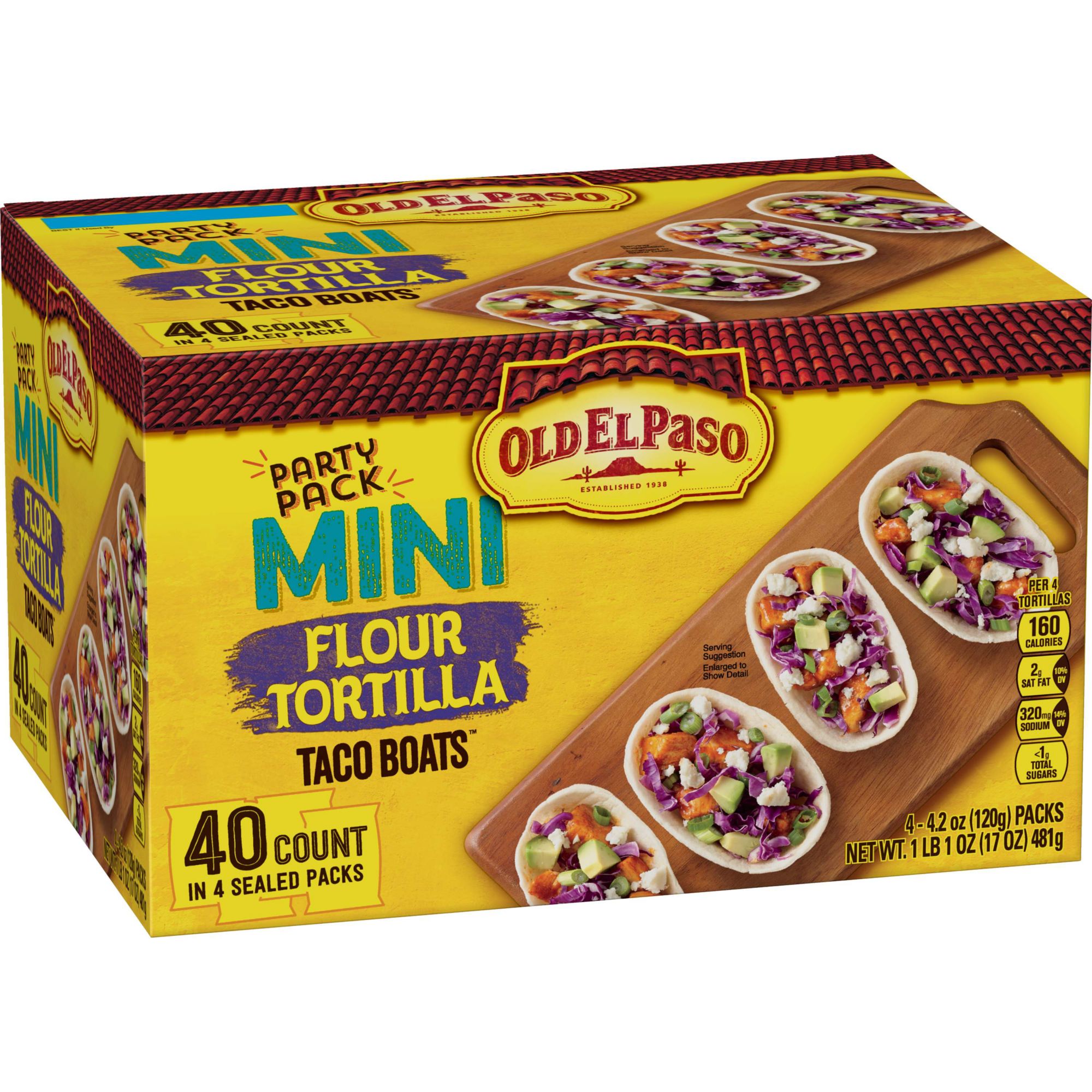 Old El Paso Mini Flour Tortilla Taco Boats Party Pack 40 Ct