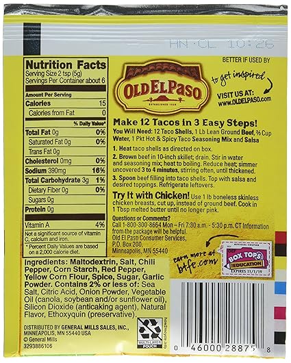 Old El Paso Taco Seasoning Mix Hot Spicy Calories Nutrition