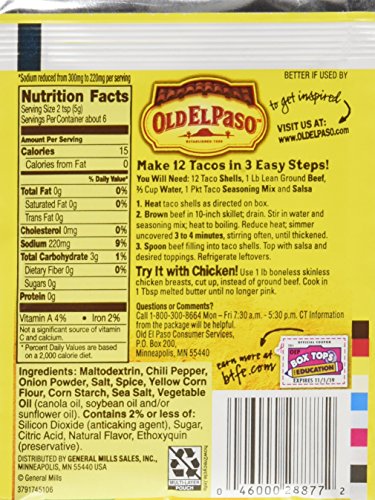Old El Paso Smart Fiesta Taco Seasoning Mix Reduced Sodium In 2019