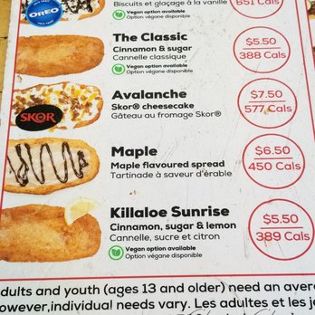 Beavertails Menu Menu For Beavertails Byward Market Ottawa