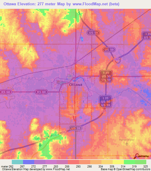 Elevation Of Ottawa Us Elevation Map Topography Contour