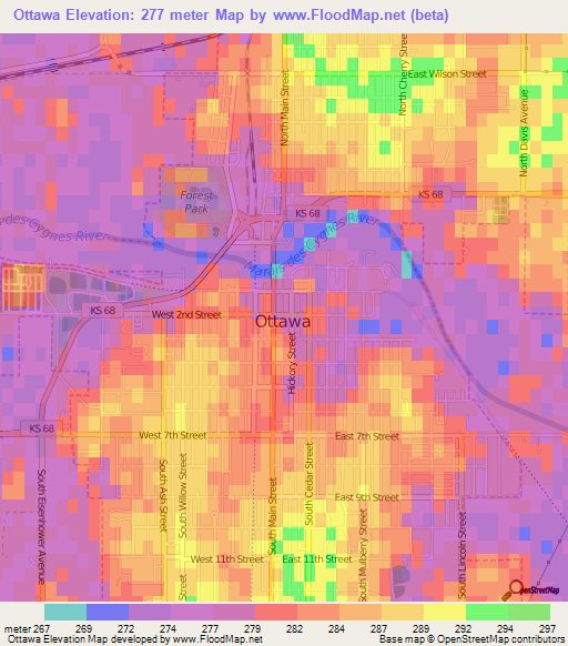 Elevation Of Ottawa Ks Usa Topographic Map Altitude Map