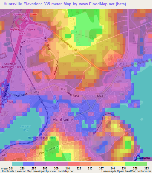 Elevation Of Huntsville Canada Elevation Map Topography Contour