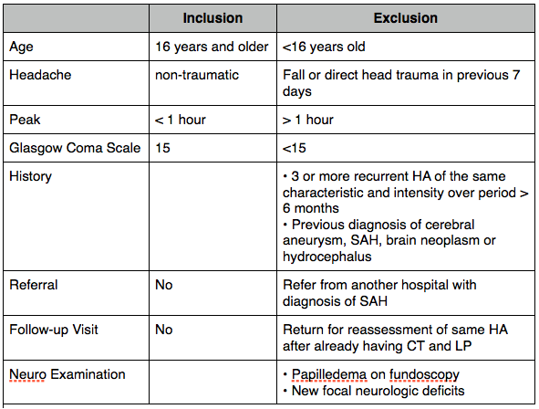 Clinical Decision Rules To Rule Out Subarachnoid Hemorrhage For