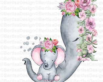 Cute Elephant Mommy And Baby Clipart Pre Designed Photoshop