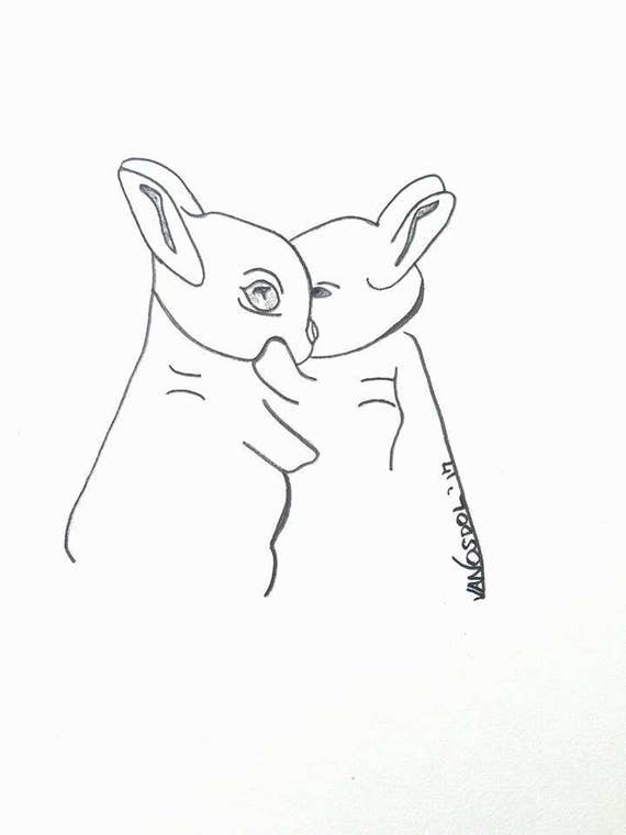 Original Baby Elephant Minimalism Graphite Pencil Sketched Minimal
