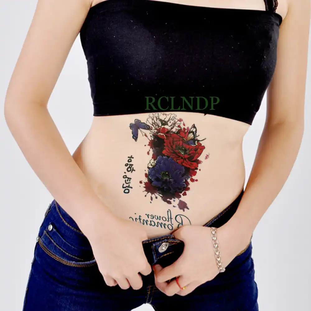 Tatuaje Temporal Pegatina Impermeable Sexy Flor Rosa Tatuaje Falso