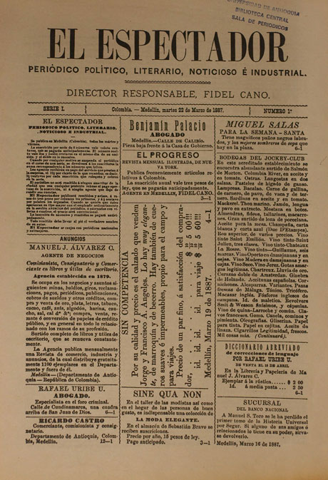 Espectador Primera Edicion Periodico Espectador 1887 750 000