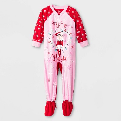 Girls Pink Elf On The Shelf Christmas Holiday Snowflake Pajamas