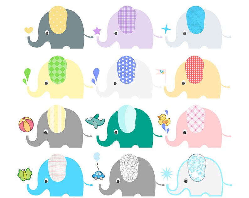 Cute Elephants Clipart Clip Art Digital Scrapbooking Etsy
