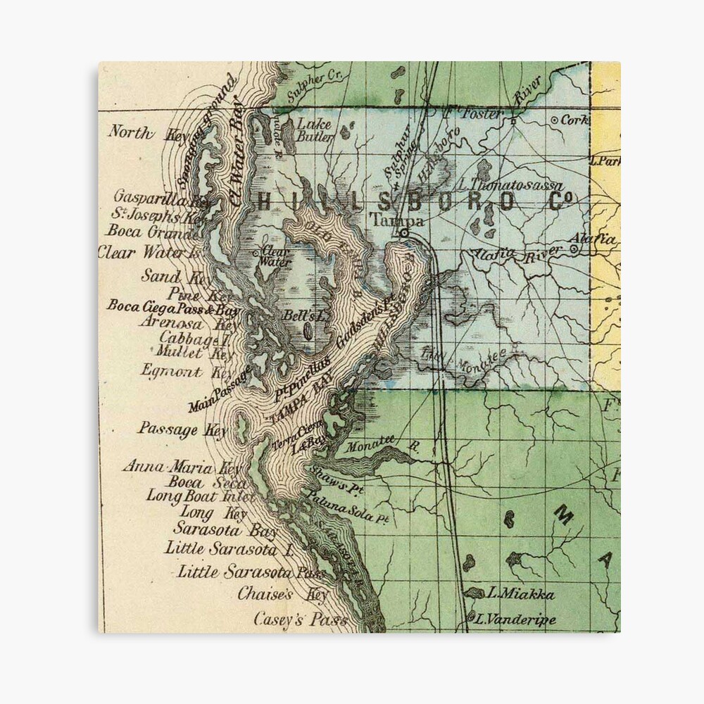 Tampa Fl Canvas Print Florida Tampa Bay St Petersburg Vintage Map